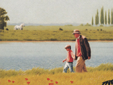 Und plötzlich dreht sich der Großvater zu Matti und sagt: Lass uns spazieren gehen. Und die beiden schleichen sich unbemerkt davon, und lassen die ernsten und weinenden Gesichter zurück.