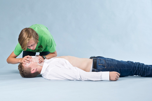 Wenn du unsicher bist, ob die Person normal und regelmäßig atmet, rufe ebenfalls sofort die Rettung 144. Anschließend beginne mit der Herz-Lungen-Wiederbelebung.